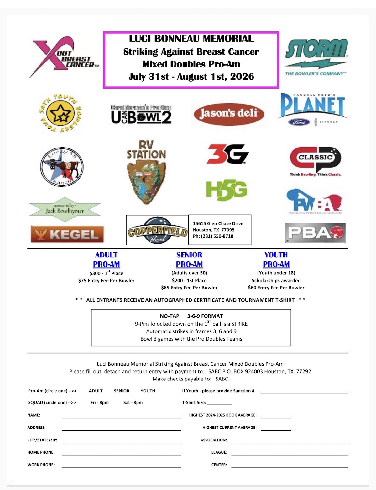 will be held at Copperfield Bowl from July 30th through August 2nd, 2026.